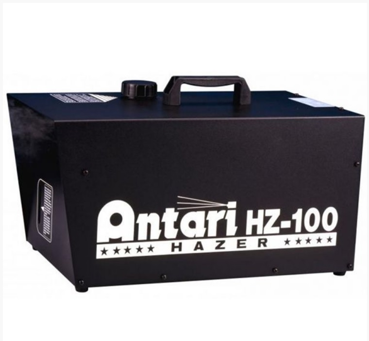 Hazer это прибор, создающий довольно тонкий эффект прозрачной долгоживущей дымки, которая чаще называется туман. С одной стороны, эта дымка почти не мешает видеть происходящее на сцене даже с большого расстояния, с другой стороны, свет лазеров и других световых приборов в ней прекрасно материализуется в объёмные фигуры. Принципиальное отличие от дым-машины состоит в том, что Hazer не имеет термоэлемента, и аэрозоль распыляется воздухом, который подаётся в бак с жидкостью под давлением при помощи мощного компрессора. HZ-100 - прибор для клубных, концертных и театральных инсталляций. HZ-100 избавляет от всех проблем, традиционно связанных с дым машинами, так как обладает возможностью мгновенного запуска и длительной работы. HZ-100 обладает прочным и компактным металлическим корпусом, прост в обслуживании и удобен в эксплуатации. Прибор абсолютно безопасен, так как в его работе применяется специальная невоспламеняющаяся и нетоксичная жидкость для хейзеров. Для автоматического управления используют таймер HC-1, позволяющий задавать интервал и продолжительность работы, для дистанционного использования применяется радио пульт HCR-1(не входит в комплект поставки). Рекомендуемая жидкость для использования - Antari HZL-5