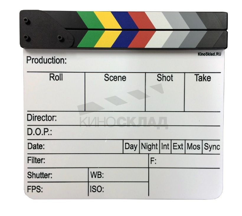 Хлопушка 26 х 28 х 3,5 см белая акриловая с английским текстом. Пластиковая хлопушка с деревянным механизмом с английским текстом. Незаменимый инструмент в кинопроизводстве, для съемки видео и влогов. Для нанесения надписей используются стираемый маркер и подушечки для очистки от записей.