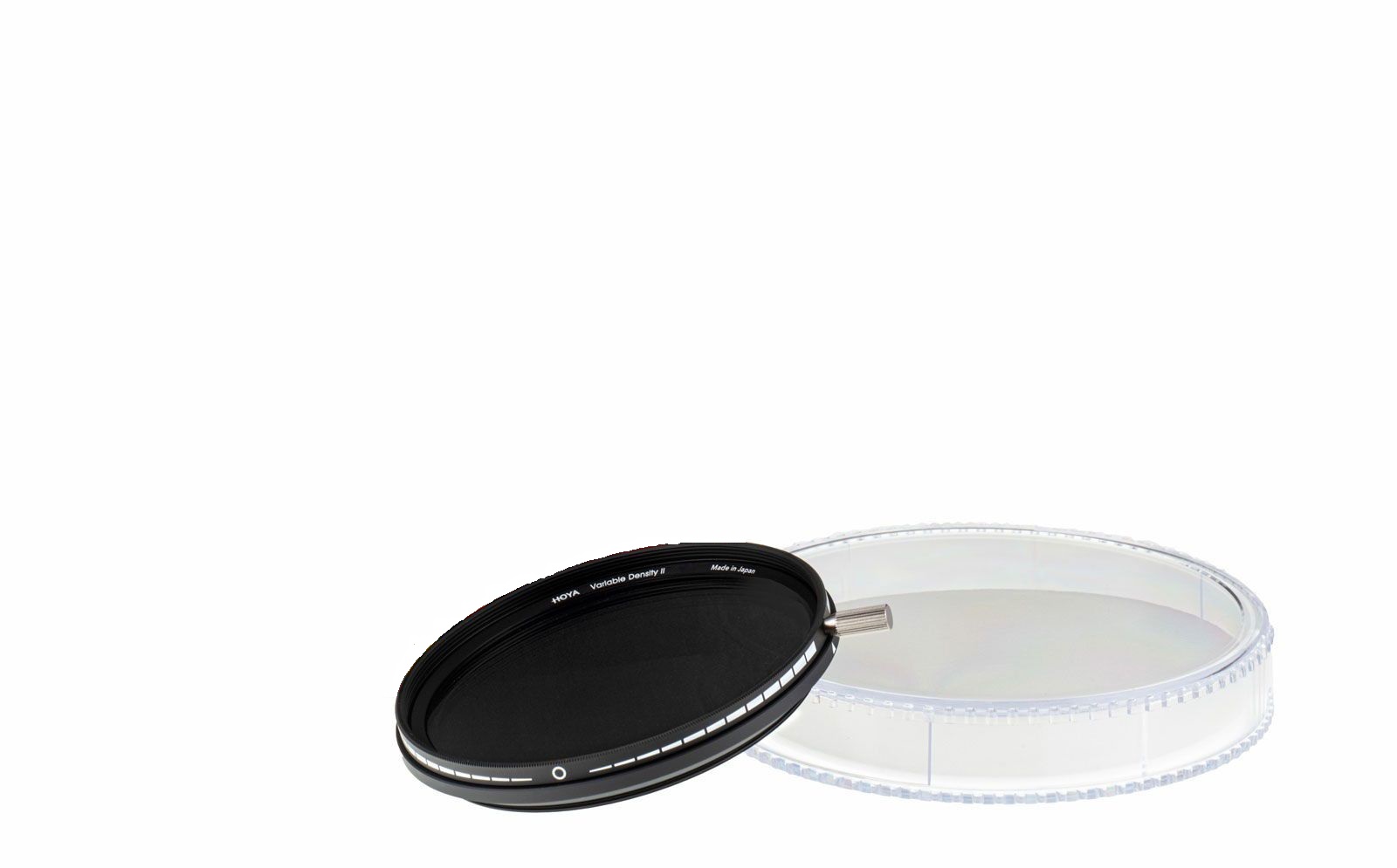 Нейтрально-серые светофильтры переменной плотности второго поколения HOYA Variable Density II ослабляют световой поток на величину от 1.5 (ND3) до 9 (ND400) ступеней экспозиции. Отличие от предыдущего поколения модели HOYA Variable Density состоит в усовершенствованной оправе, у которой появился специальный рычажок, облегчающий использование фильтра.