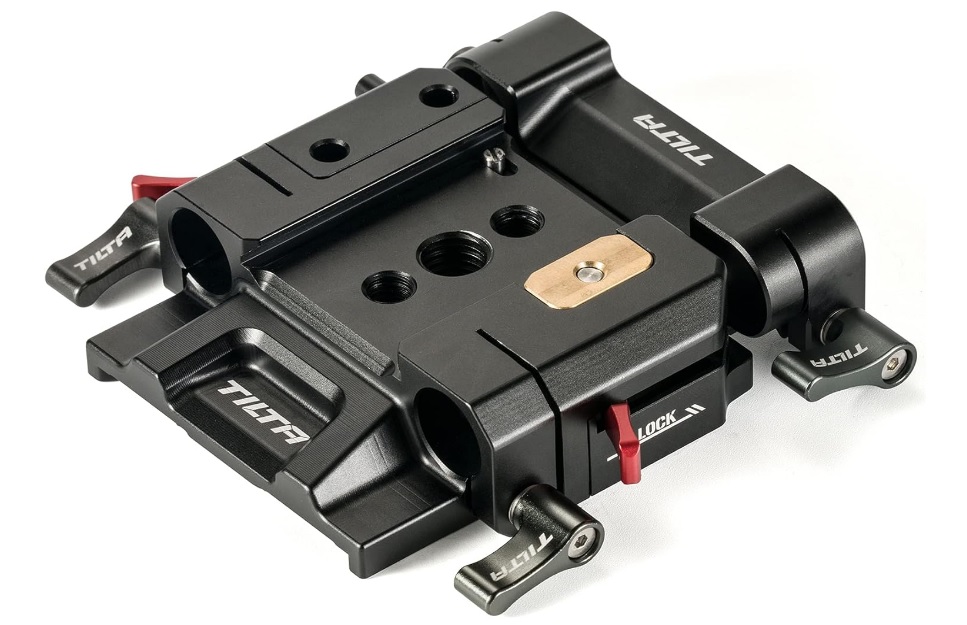 Базовая площадка Tilta TILTAING 15mm LWS Baseplate Type II совместима с клетками для фотоаппаратов Sharp, Panasonic, Fuji, Nikon и Sony. Имеет слот для установки аккумулятора V-mount, конвертер напряжения, 2 выхода D-Tap, прямой выход 7.4В. Позволяет устанавливать направляющие диаметром 15 мм, поддерживает возможность установки на стандартный "ласточкин хвост". База изготовлена из алюминия и нержавеющей стали, имеет несколько резьбовых слот ¼ и 3/8 дюйма для монтажа на штатив или монопод. Установка камеры выполняется с помощью винта 1/4".