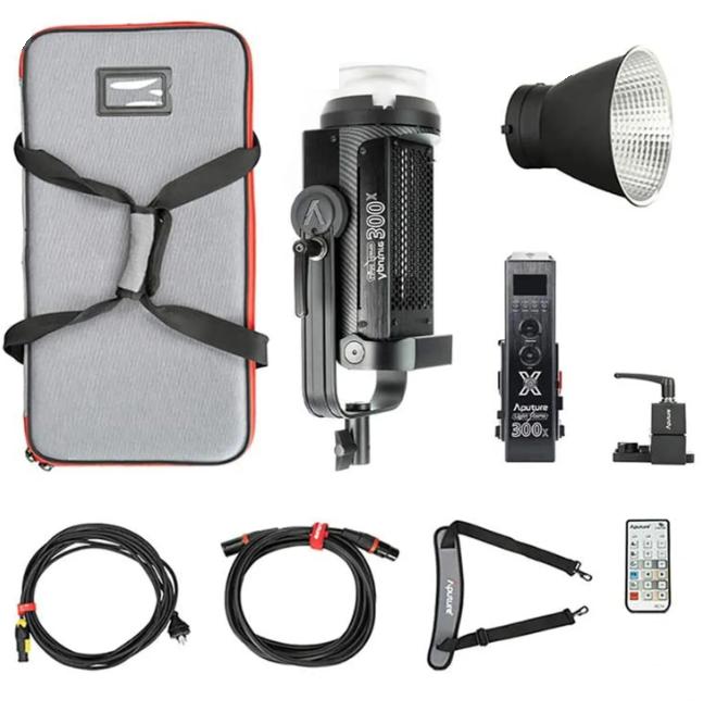 Биколорная модель мощной трёхсотой серии. Температура (2700-6500K). Может управляться через приложение в мобильном телефоне или с помощью пульта, в комплекте есть специальное крепление для балласта на стойку, так что забудьте о том, чтобы спотыкаться об технику на площадке! :) Байонет Bowens даёт возможность использовать всевозможные модификаторы, такие как октобоксы, лантерн, линза Френеля и прочие. Может работать от двух V-mount батарей.