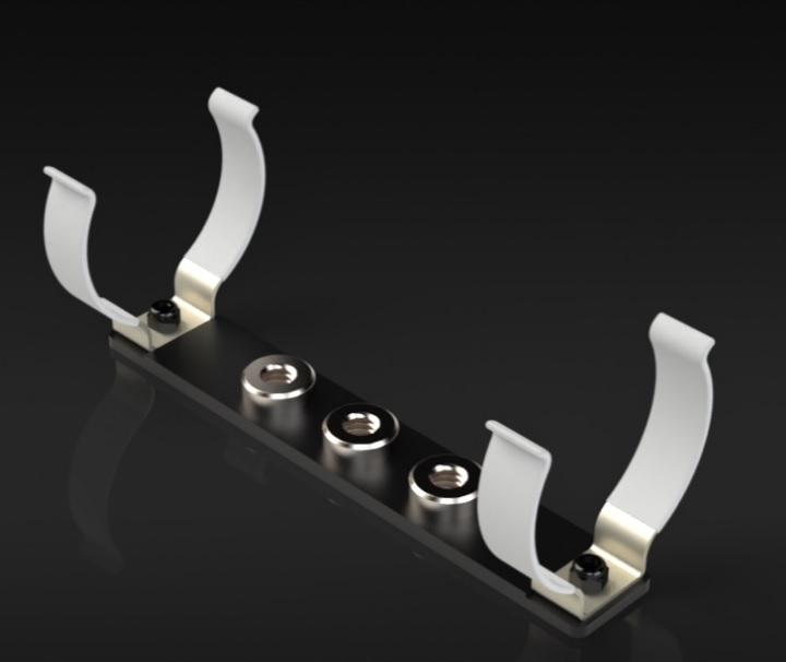 Пластина выполнена из алюминия и имеет 3 резьбы 1/4' для надёжного крепления прибора любым удобным способом. Прорезиненные клипсы для фиксации лампы.