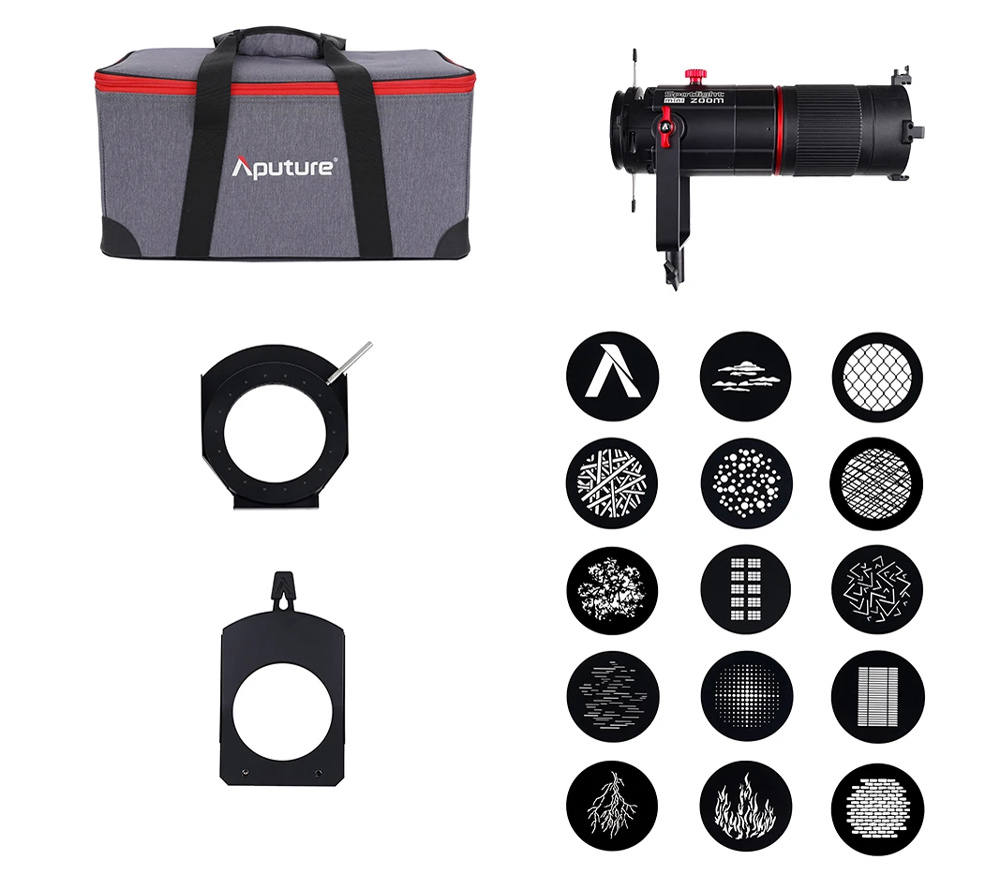 Световой модификатор с линзой формирующей луч света с углом от 15 до 30 градусов. Конструкция предусматривает слот, в который можно установить прилагаемый держатель гобо размера М, или дополнительную диафрагму для контроля формы и размера светового луча. Уровень освещения: с Aputure LS 60d при 5600K и угле луча 15 градусов 14400 люкс на 1 метр, с Aputure LS 60x при 6500 K и угле луча 15 градусов 10330 люкс на 1 метр.