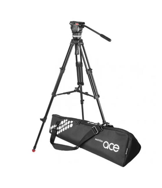 Алюминевый 75 мм штативный комплект System Ace M GS для видеокамер весом от 0 до 4 кг с средней растяжкой и диапазоном высот 57 - 173 см, использующий головку Ace M со стыковочным узлом головки с площадкой Sideload и с двухколенным выдвижением.